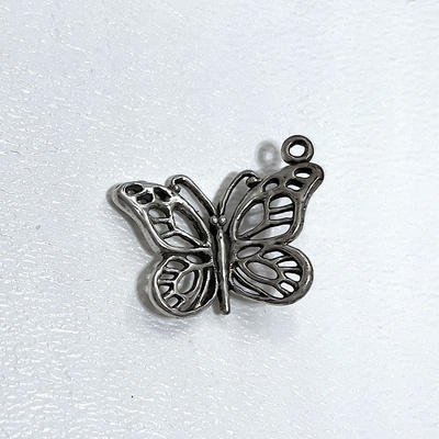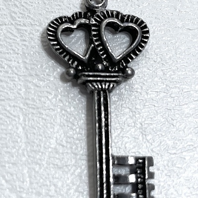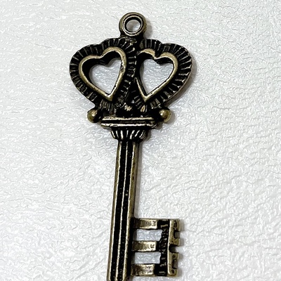 Double Hearts Skeleton Key Charm / Pendant - Silver