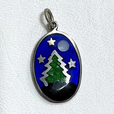 Evergreen Trees and Star with Inlaid Mother of Pearl Moon Pendant