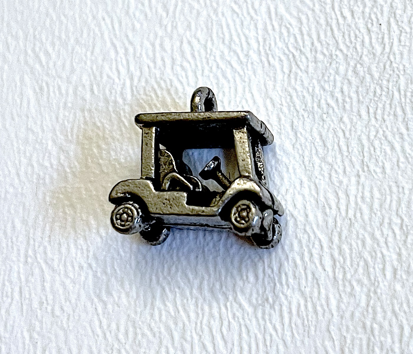 This vintage 3D charm is of a Golf Cart Community Vehicle made of silver pewter. The design is suitable for all occasions. The charm makes a perfect gift for someone special. Easy to wear as a charm. Golf Cart Community Vehicle Silver Pewter Charm: 11x14mm All charms come with a free attached sterling silver jump ring.