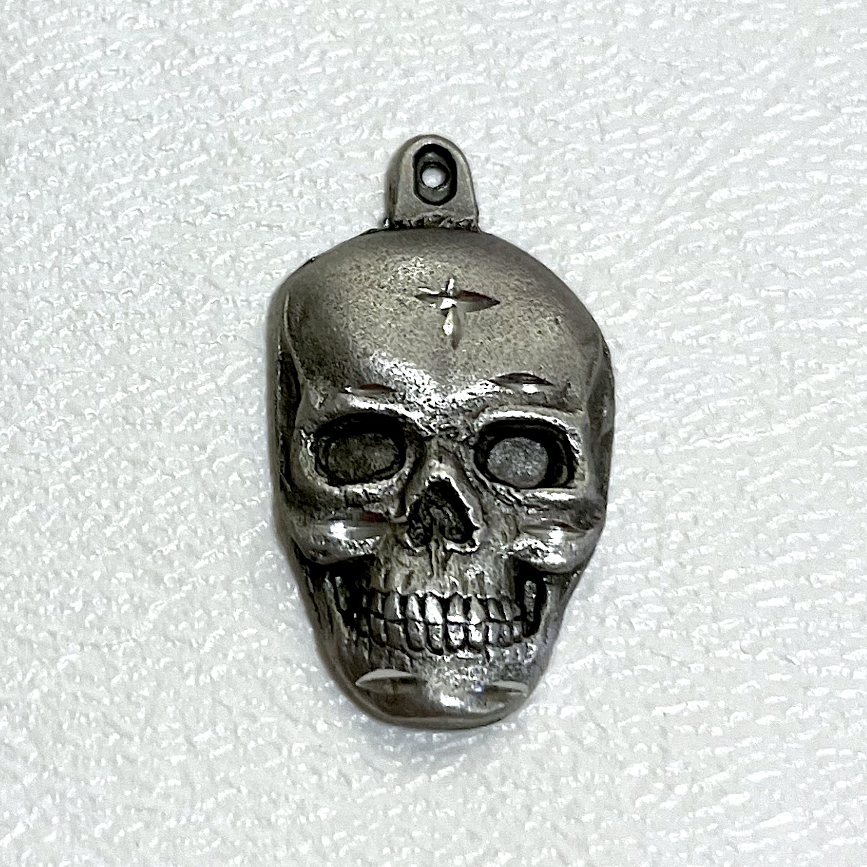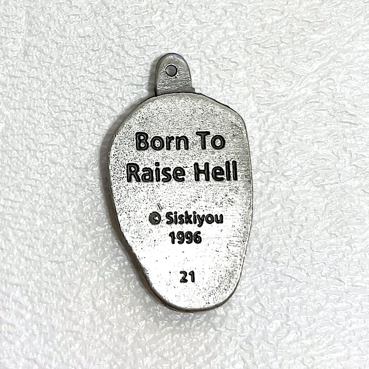 1996 Siskiyou Diamond Cut Skull Pewter Charm / Pendant: 25mm. This vintage pendant from 1996 is a unique addition to any jewelry collection. The Diamond Cut Skull pewter pendant is the perfect accessory for any occasion, whether it be a Ren Faire, Halloween celebration or a Gothic themed party. The charm/pendant style is versatile enough to wear with any outfit. Brand named Siskiyou on the back along with the year 1996 and the phrase Born To Raise Hell adds a touch of personality to the piece, making it a one-of-a-kind item. Perfect for collectors of vintage and antique jewelry, this pendant is sure to make a statement. All charms come with an attached free sterling silver jump ring.