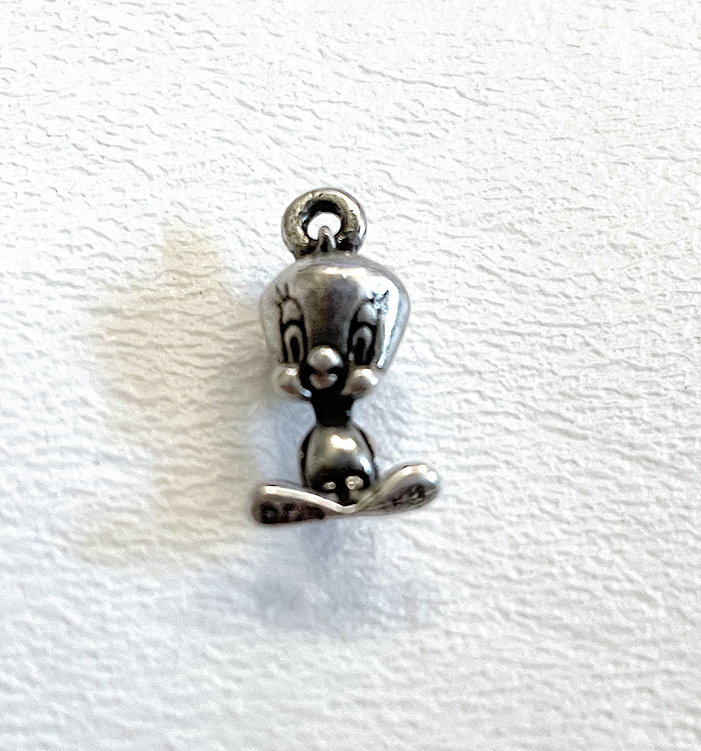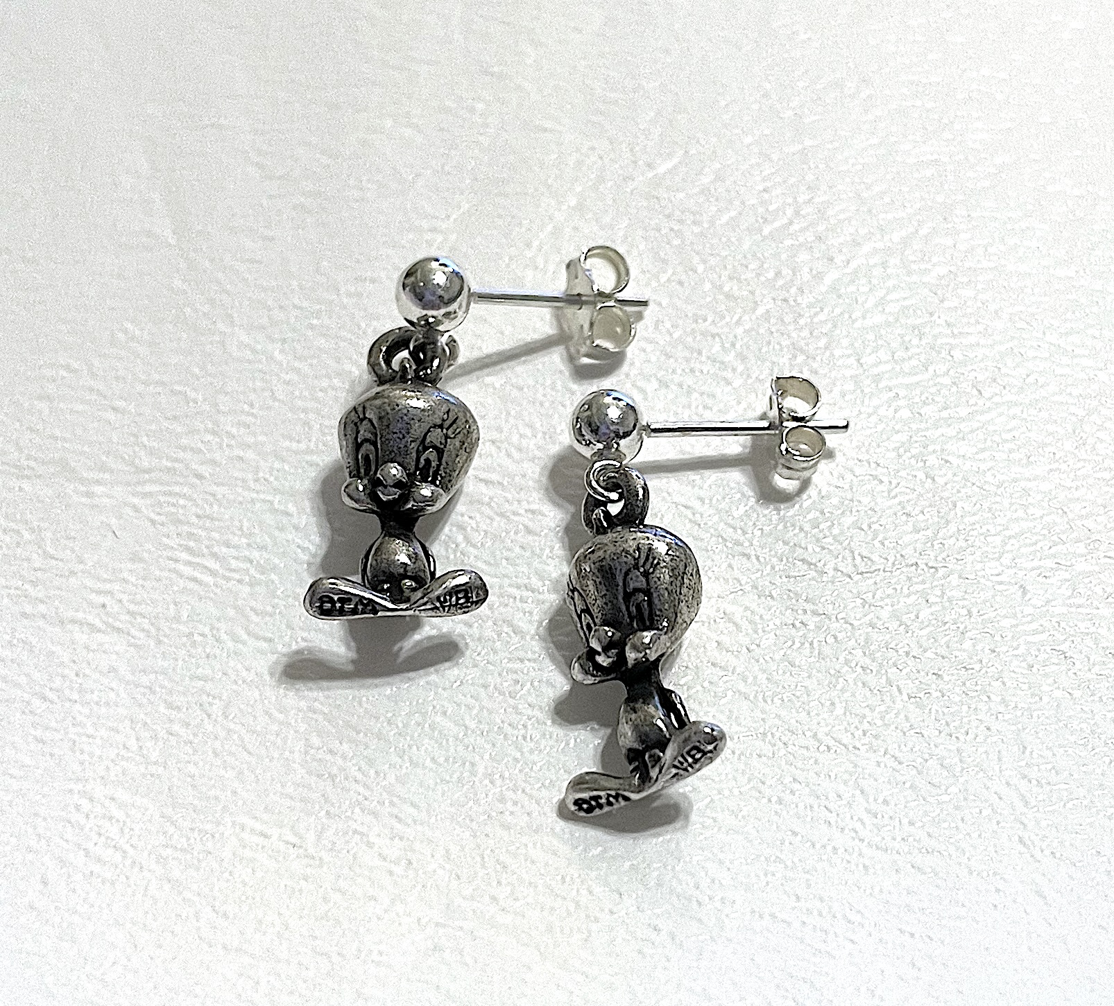 3D Looney Tunes Tweety Bird Sterling Silver Ball Post Earrings. These unique Tweety Bird pewter charms on Sterling Silver 4mm Ball Post Earrings featuring a 3D Tweety Bird is a must-have for any Looney Tunes fan. The item is an original, vintage, and rare, perfect for collectors of animation merchandise. The charm earrings are a great addition to any collection and is sure to bring joy to anyone who loves cartoon and TV characters and Warner Brothers animation. It is a small but meaningful piece of memorabilia that captures the essence of the beloved Tweety Bird character. Don't miss out on the opportunity to own this one-of-a-kind item that is Vintage, Rare and Out Of Production.